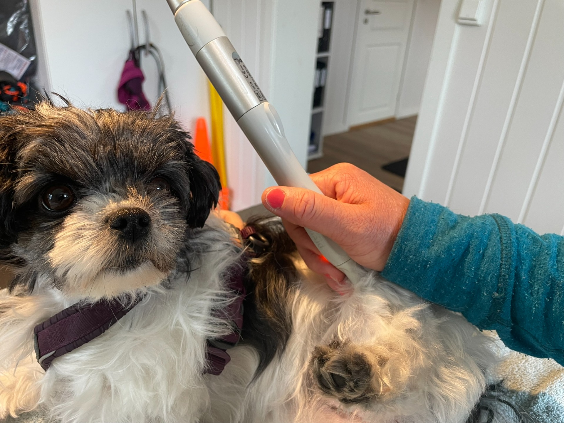 Akupunktur også kalt tradisjonell kinesisk akupunktur TRM er en behandlingsform hvor man setter tynne nåler (jeg bruker laser) i punktene på hundens kropp for å påvirke nerver, muskler og energiflyt (kaldt qi i kinesisk medisin).